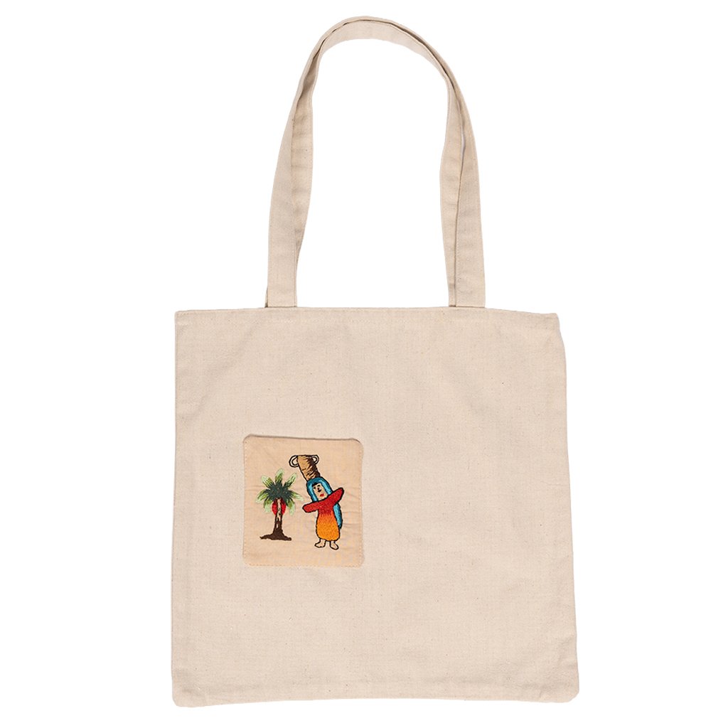 شنطة مصنوعة من قماش الدك بلون أوف وايت، تجمع بين المتانة والاستدامة لتكون رفيقة مثالية في استخداماتك اليومية. تتميز القطعة بتطريز يدوي متقن لشخصية ريفية بجانب نخلة، وهو تصميم يحتفي بالفلكلور المصري وبساطة الحياة في القرية. صممت هذه الشنطة بمساحة واسعة ويد مريحة لتضمن لك حرية الحركة، وهي نتاج عمل يدوي لسيدات من الجيزة برعن في تحويل قماش الدك إلى عمل فني يحمل قصة وتراثا. اقتناؤك لهذه الشنطة هو دعم مباشر لتمكين المرأة في الحفاظ على الحرف التقليدية ضمن رؤية “سوا”.