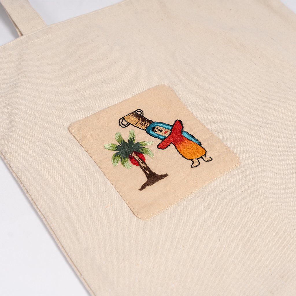 شنطة توتي باج عملية من قماش الدك المتين، مزينة بتطريز يدوي يجسد التراث الريفي المصري. قطعة صديقة للبيئة تعبر عن الهوية، ونمشي بها “سوا”.
