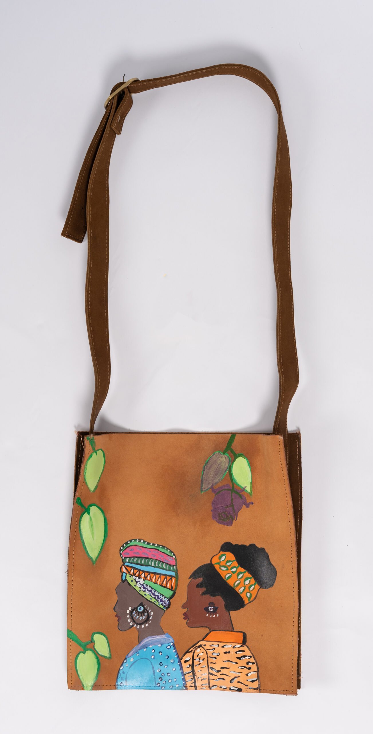 بألوان ترابية دافئة، تأتي هذه الشنطة المصنوعة بالكامل من الجلد الطبيعي لتكون قطعة استثنائية في مجموعتكِ. تبرز فرادة هذه القطعة في الرسم اليدوي الذي يصور سيدتين تقفان جنباً إلى جنب في مشهد يفيض بالألفة والجمال الأفريقي، مما يعكس روح التعاون التي يقوم عليها مشروع “سوا”. صنعت الشنطة يدوياً بمهارة في محافظة بني سويف ورسمت في القاهرة، لتجمع بين جودة الجلد الطبيعي وفن الرسم اليدوي المتقن. تتميز بتصميم عصري وحزام كتف قابل للتعديل لترافقكِ في تنقلاتكِ اليومية بكل راحة وأناقة.