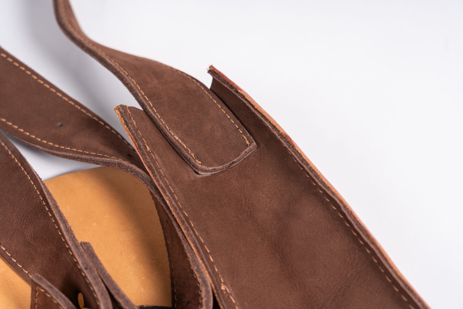 حزام كتف جلد طويل مزود بإبزيم معدني لسهولة التعديل.